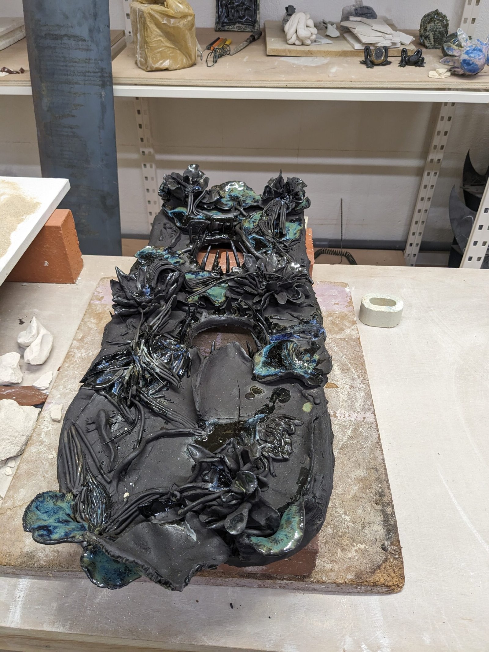 grès émaillé, éclat de verre, 65x30cm Typhanie Vallée x Camille Correas 2024